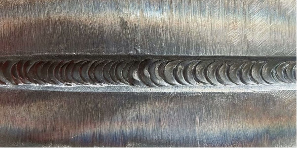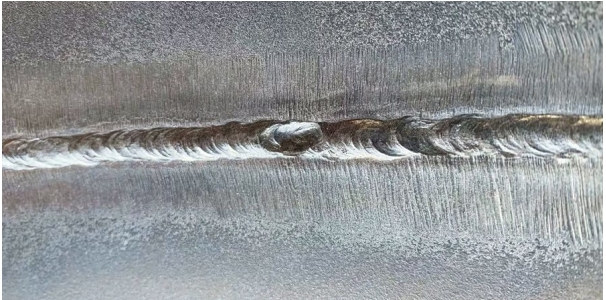 滅弧焊雖然可以避免多種缺陷的產生,但因其是斷續(xù)焊接,焊接速度相對較慢,操作不當時容易粘焊條,如果不及時打磨處理,焊縫內部極易產生氣孔缺陷。因此,為避免粘焊條現(xiàn)象產生,可適當加大焊接電流、增加焊機推力電流。同時,起弧、滅弧動作快速果斷,避免因熔池冷卻時間過長再起弧,導致焊道產生夾渣。另外,兩焊波間距不易過大,要使相領兩焊波相疊,形成密鱗片狀,否則會使焊波脫節(jié),外觀成型不夠美觀。
