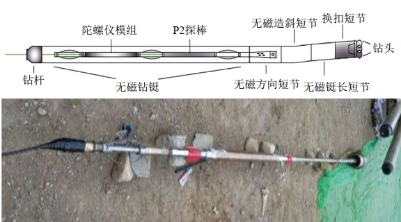 施工措施:采用慣性導(dǎo)向系統(tǒng)進(jìn)行導(dǎo)向孔施工的導(dǎo)向測量定位(圖 3)。在出入土點(diǎn)磁場信號較強(qiáng)和磁場干擾較小區(qū)域進(jìn)行短距離導(dǎo)向,然后用陀螺儀導(dǎo)向設(shè)備對導(dǎo)向數(shù)據(jù)進(jìn)行復(fù)測,修正導(dǎo)向孔曲線,保證穿越曲線的準(zhǔn)確。在出入土點(diǎn)兩側(cè)及山體腹地低洼處布置線圈等人工磁場,并輔以磁靶作為慣性導(dǎo)向系統(tǒng)。