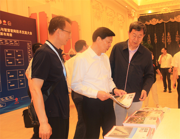 國(guó)家管網(wǎng)集團(tuán)科技部總經(jīng)理丁建林(中)參觀《管道保護(hù)》展臺(tái)