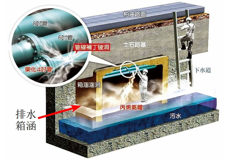 圖 1 丙烯管線直接貫穿排水箱涵