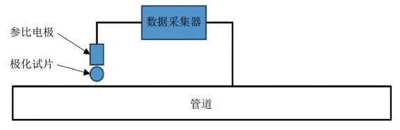 采用智能數(shù)據(jù)采集器(YKM-CP-DataRec)對管道進行24 h通斷電電位監(jiān)測,參比電極為銅/硫酸銅便攜參比電極,極化試片與硫酸銅參比電極一體(可以減小參比電極與極化試片距離),試片裸漏面積為6.5 cm2、材質(zhì)與管道同材質(zhì)為L450M。