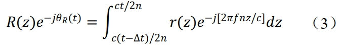 式中c為光速,m/s;t為時間,s;∆t為脈沖寬度,n為光纖折射率,f 為光纖激光器輸出頻率,Hz;z為散射點距離,m;r(z)代表光纖距離z處的離散點反射率。瑞利后向散射光與本振光參考光通過2×2耦合器進行相互混頻,經由平衡光電探測器將光信號轉化為電信號。光電探測器輸出信號可表示為: