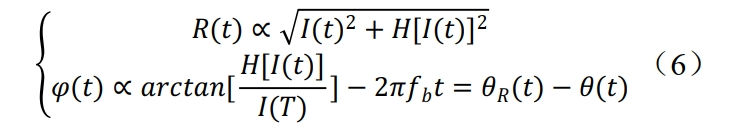 式中fb為AOM的頻移量,一般為80 MHz或者200 MHz。由于fb通常具有較高的頻率與較窄的頻寬,我們可以簡單地利用希爾伯特變換解調出相位信號: