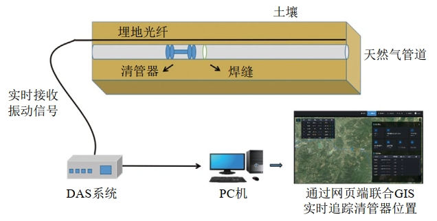 DAS系統(tǒng)一般由光路系統(tǒng)和工控機系統(tǒng)組成,光路系統(tǒng)主要負責激光的調制和相干探測,工控機主要負責信號的采集、分析與識別。該系統(tǒng)安裝簡易,只需將光路和工控機系統(tǒng)安裝在天然氣站場或閥室的機房內,接上光纖即可進行在線監(jiān)測。近年來,DAS系統(tǒng)在天然氣在線監(jiān)測領域的應用日益增多,特別是在第三方施工損壞監(jiān)測、清管作業(yè)跟蹤監(jiān)測、天然氣管道泄漏監(jiān)測等方面。