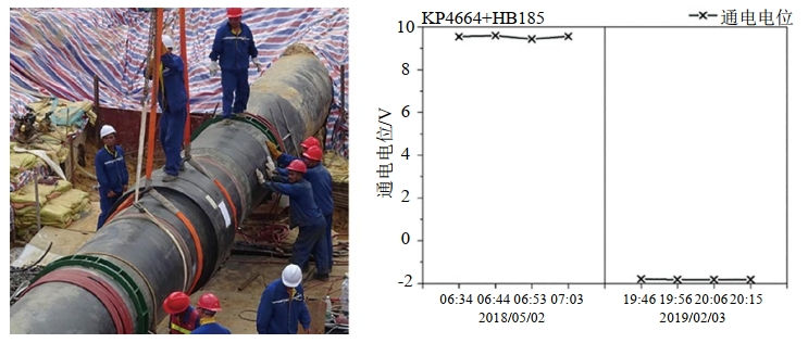圖 6 強制電流陰極保護+極性排流效果
