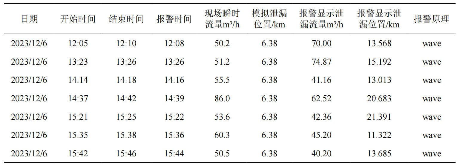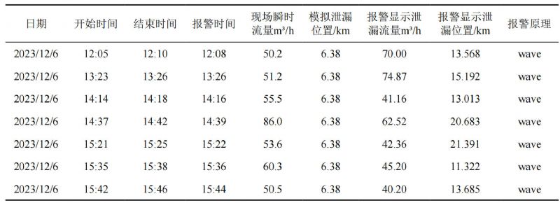從現(xiàn)場模擬泄漏測試7次報警中可以看出,7次均判斷出管道發(fā)生了泄漏,但泄漏檢測報警定位卻出現(xiàn)嚴(yán)重偏差。