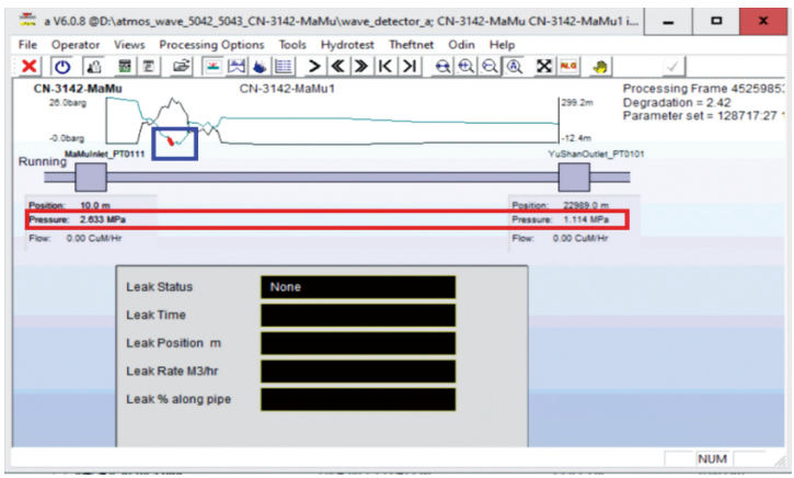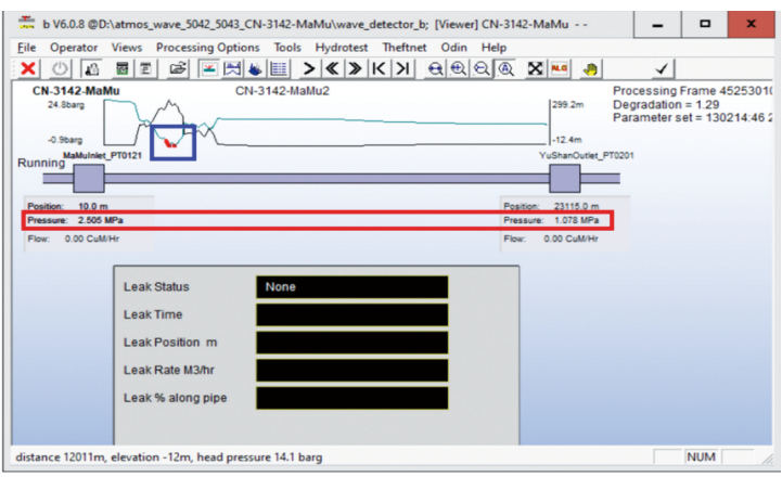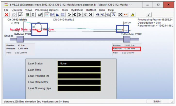 (5)優(yōu)化檢測管道區(qū)域。根據(jù)山區(qū)段管道沿線地形高差差異情況,合理增設(shè)壓力傳感器,實施分區(qū)域泄漏檢測模式,提高泄漏檢測系統(tǒng)報警響應(yīng)速度與定位準(zhǔn)確性[8]。