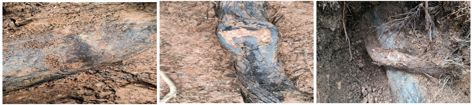 圖 1 根系纏繞后防腐層顏色變黑