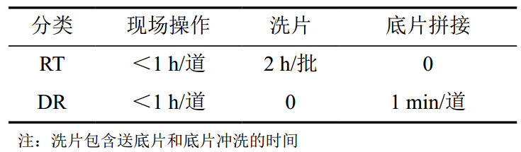表 1 DR檢測與RT檢測耗費時間對比