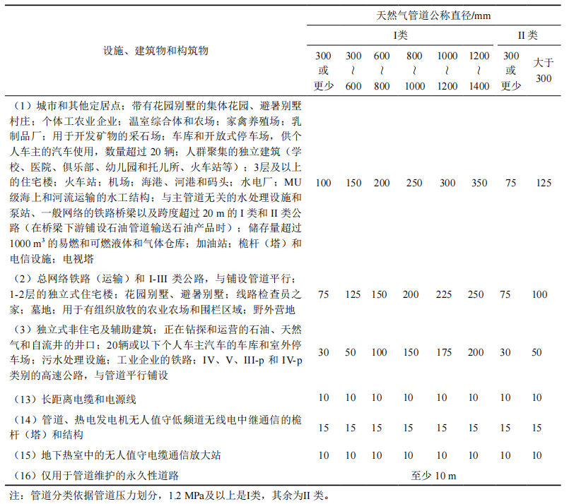 我國管道設(shè)計(jì)標(biāo)準(zhǔn)GB 50251―2015《輸氣管道工程設(shè)計(jì)規(guī)范》和GB 50253―2014《輸油管道工程設(shè)計(jì)規(guī)范》中規(guī)定管道兩側(cè)5 m不能有建構(gòu)筑物,與烏國標(biāo)準(zhǔn)所規(guī)定的控制距離差別較大。