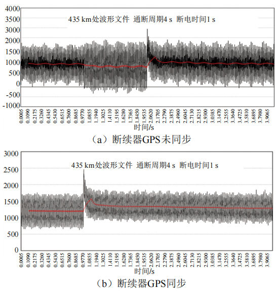 在管道沿線恒電位儀上加裝GPS同步斷續(xù)器,并使用CP-Thinker記錄儀采集管道沿線的電位波形,需確保全線斷續(xù)器及記錄儀GPS同步。若未實(shí)現(xiàn)同步,采集到的通斷電位將出現(xiàn)偏差,可能導(dǎo)致對(duì)管道陰極保護(hù)有效性的誤判。圖 1分別展示了斷續(xù)器GPS不同步和同步情況下的電位波形。