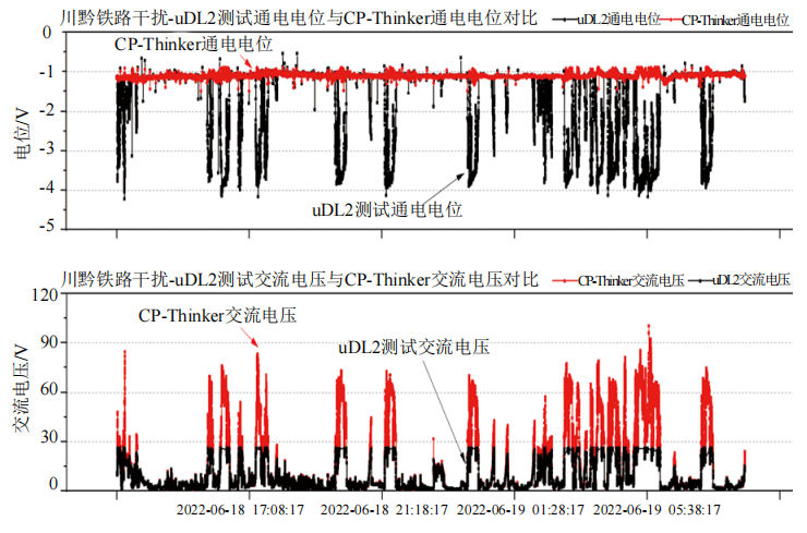 圖 4 UDL2和CP-Thinker同一位置/時(shí)段記錄的交流電壓及管地電位