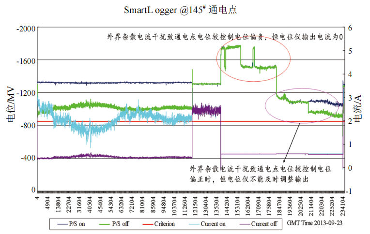 動(dòng)態(tài)直流雜散腐蝕風(fēng)險(xiǎn)通常通過(guò)管道的腐蝕速率、管道極化電位正向偏移量及時(shí)間比例來(lái)評(píng)級(jí),在極化電位的測(cè)試過(guò)程中,恒電位儀的性能及其在動(dòng)態(tài)直流雜散干擾下運(yùn)行的穩(wěn)定性,是影響檢測(cè)數(shù)據(jù)準(zhǔn)確性的重要因素。
