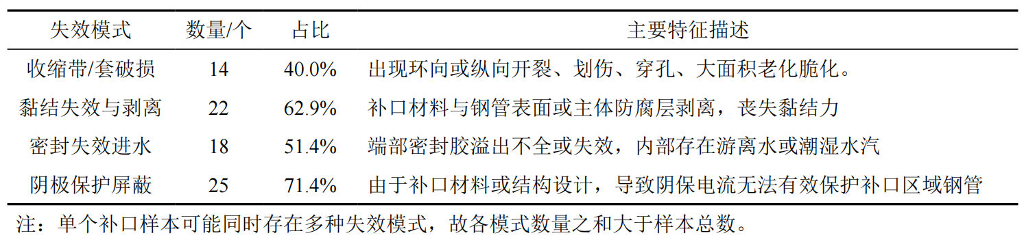 表 3 補(bǔ)口主要失效模式統(tǒng)計(jì)