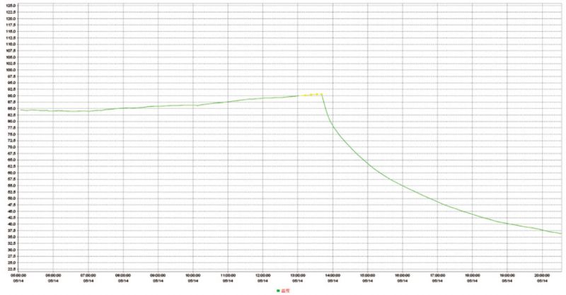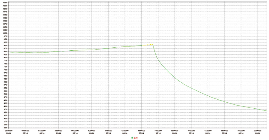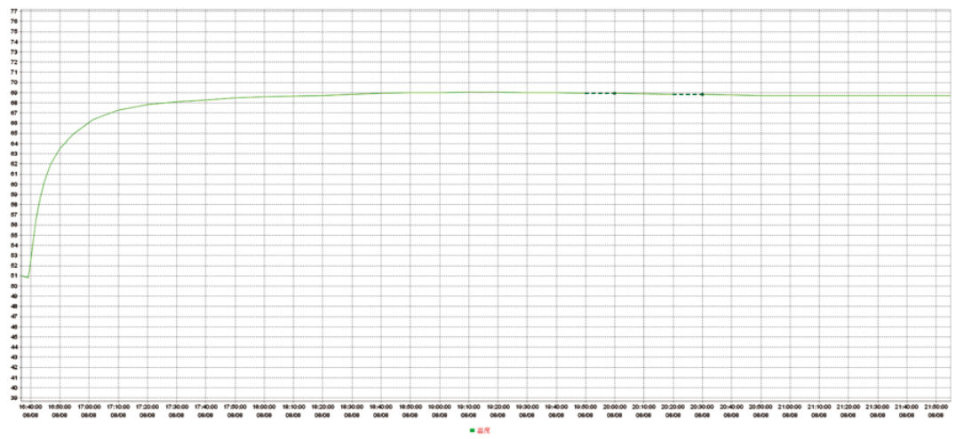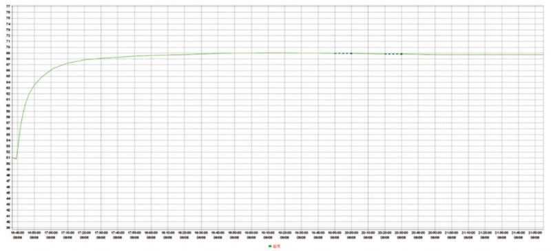 圖 2 更換潤滑油后電機空載運行驅(qū)動端溫度曲線圖