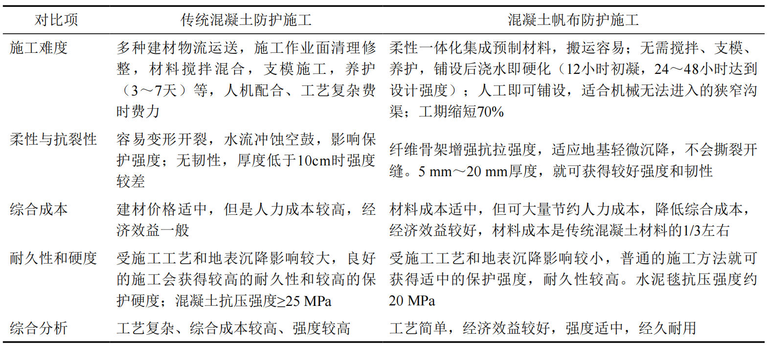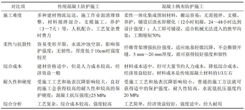 表 2 混凝土帆布與常規(guī)混凝土施工對(duì)比分析