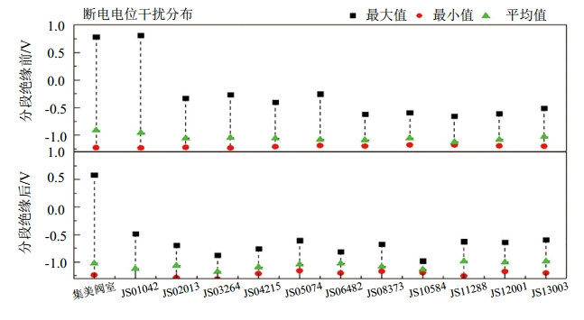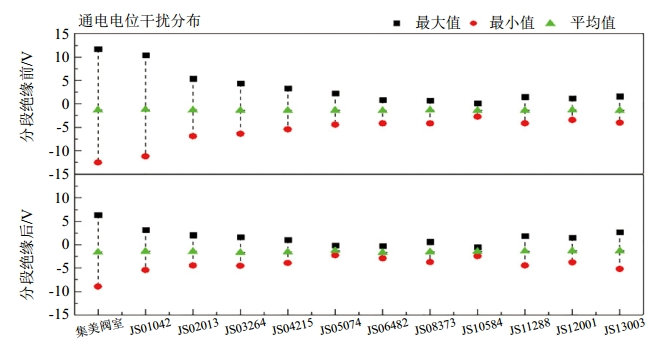 圖 4 干線與支線分段絕緣前后通斷電電位對(duì)比