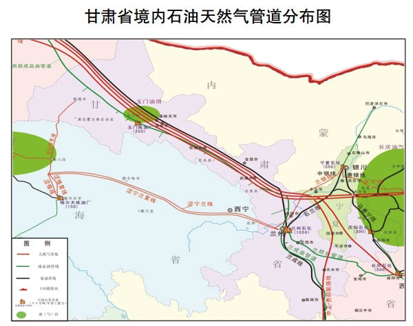 甘肅是連接新疆和中亞油氣資源與內(nèi)地的唯一重要通道。本世紀(jì)之初,隨著西部大開發(fā)戰(zhàn)略的深入實(shí)施,油氣管道建設(shè)大規(guī)模展開,貫穿東西、橫跨南北的17條跨省能源大“動(dòng)脈”加快形成,甘肅省域范圍內(nèi)油氣干線管道總長度接近1萬公里,位居全國前列。
